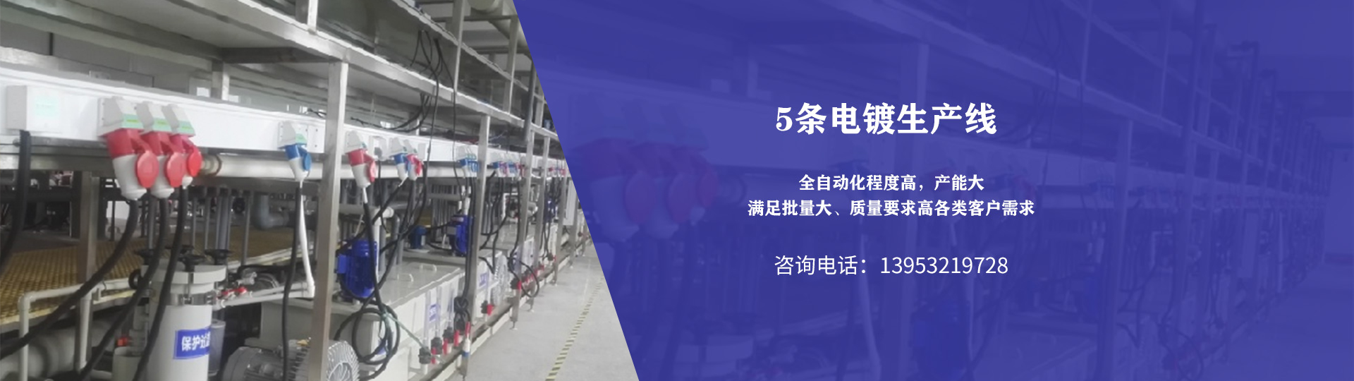 共有5條電鍍生產線,專門從事金屬表面電鍍處理,全自動化程度高,產能大